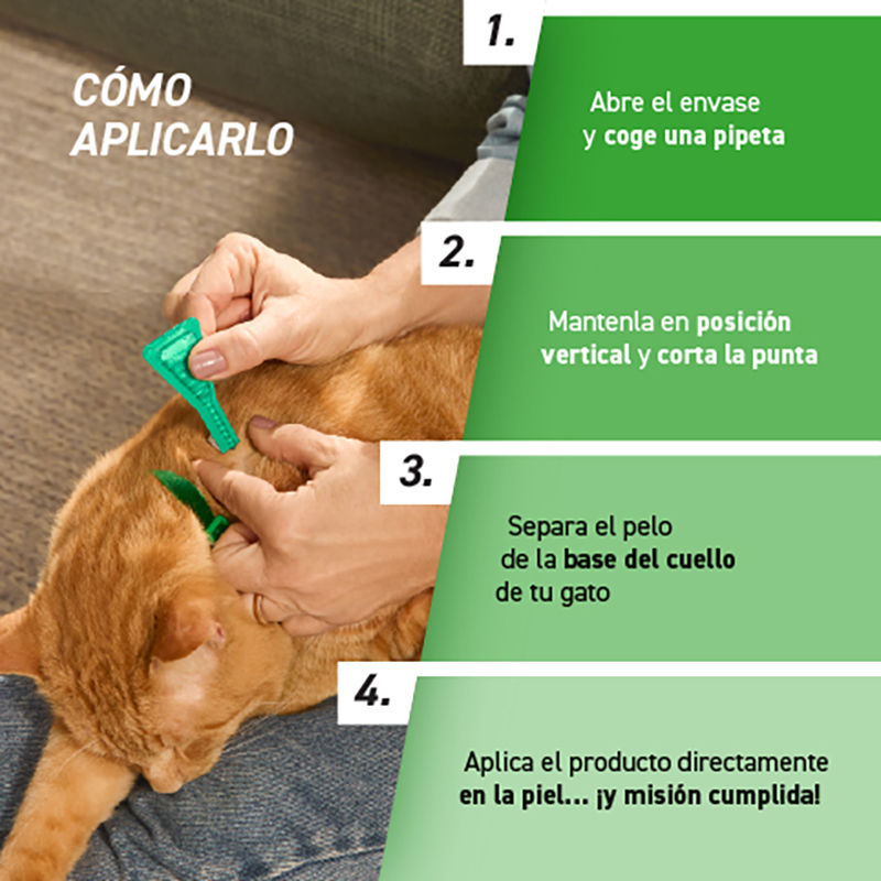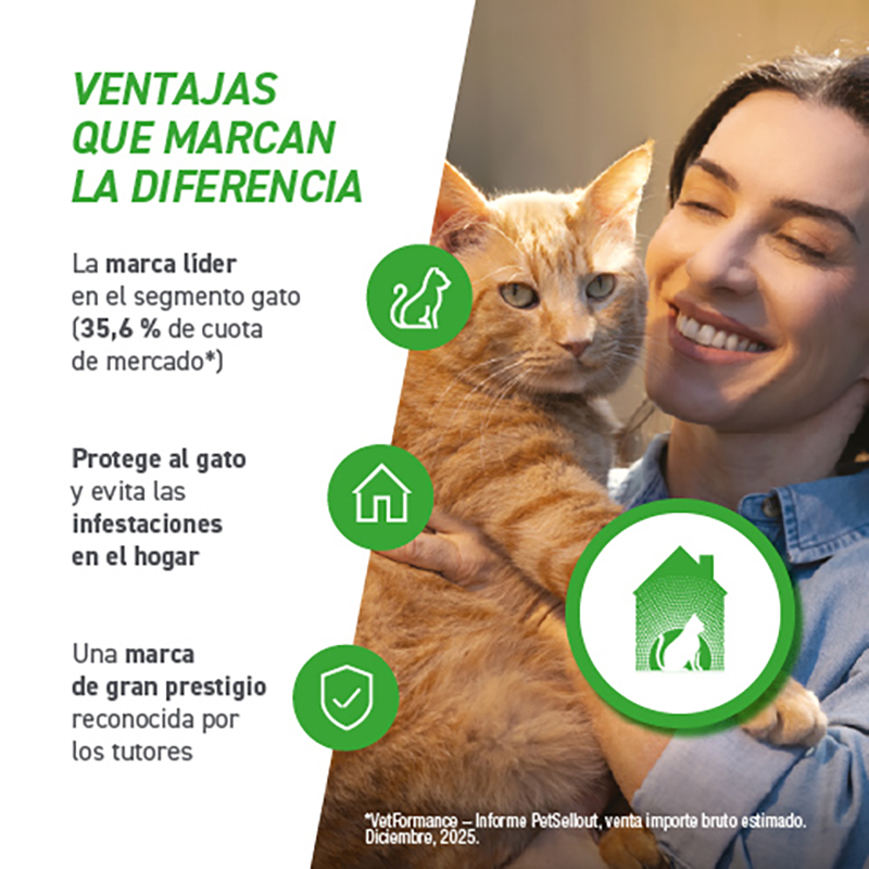 Es una opción muy utilizada cuando se busca una protección completa y cómoda, con aplicación en formato spot-on. Cada caja contiene 6 pipetas de 0,5 ml, adecuadas para su uso en gatos y hurones siguiendo las indicaciones del producto.