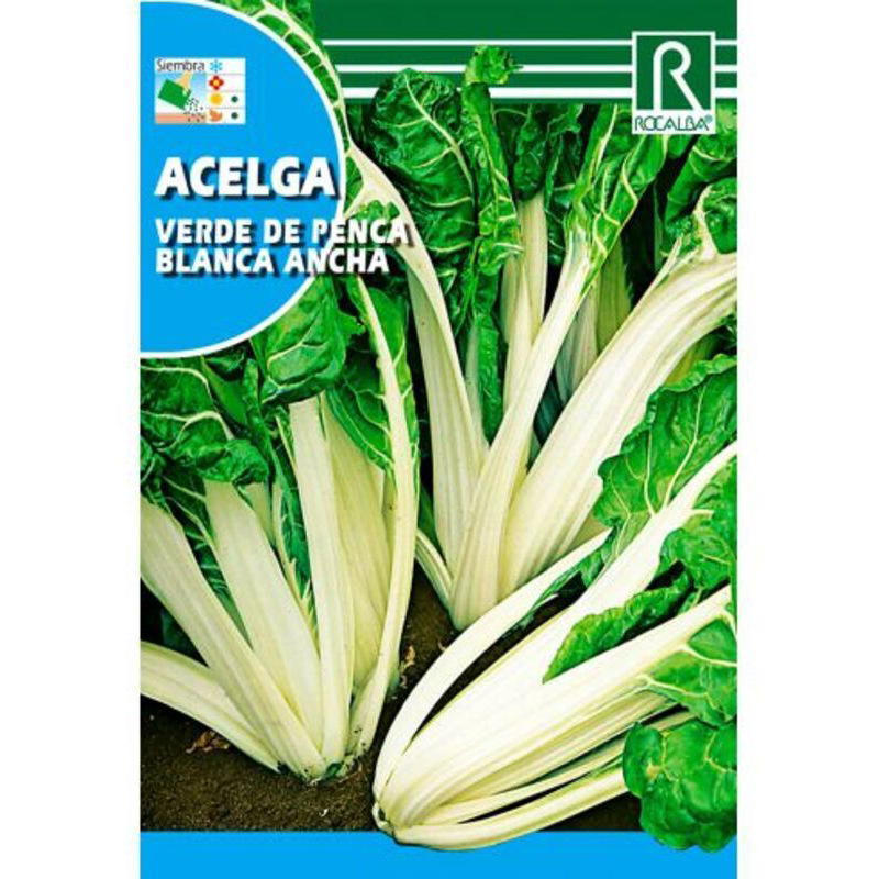 La acelga verde de penca blanca ancha es una variedad muy apreciada en huertos familiares por sus hojas grandes, abollonadas y de color verde oscuro, con penca ancha, blanca y carnosa. Es una planta rústica, resistente al frío, que permite cosechas continuadas y de excelente calidad.