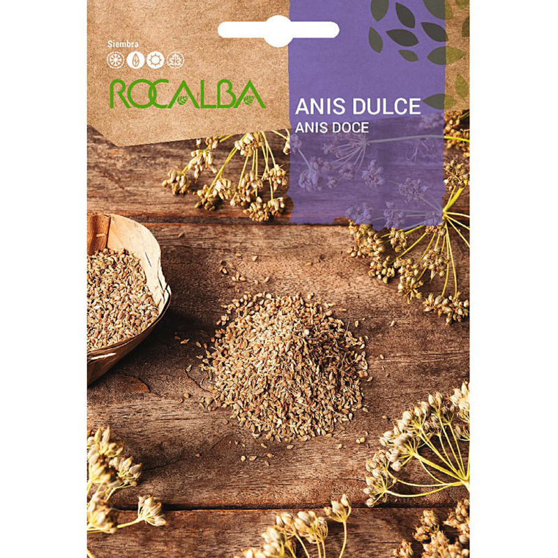 Sobre de semillas de Anís dulce. Cada sobre contiene 8 g. Es una planta anual semi-arbustiva, de tallo liso, delgado y flor en umbela que produce semillas de intenso aroma, utilizadas en farmacia como estimulante y estomático; en licorería y confitería. Plantar a una distancia de 50 cm entre hileras y a una distancia de 50 cm entre plantas. Requiere suelo suelto y rico Siembra directa y en semillero de abril a julio Se puede trasplantar a partir de un mes de la siembra de mayo a agosto. Recolección cuando las plantas amarillean dejando secar los manojos de tallos de julio a septiembre.