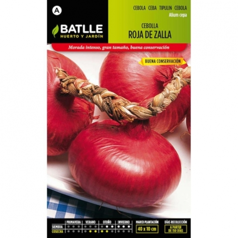 Tipo morada de buena conservación y de ciclo medio-tardío. Los bulbos son achatados con la piel exterior de color morado-cobrizo al secarse. Interiormente son morado intenso hacia la superficie y violáceo hacia el centro. Los bulbos tienen un buen tamaño, llegando con facilidad a los 200 gramos. Siembra : Noviembre-Febrero según zonas. Directamente en el terreno de asiento con dosis de 6-8 Kgs/Ha. en semillero con 10 grs./m2 trasplantando cuando tenga el diámetro de un lápiz al marco de 15×20 cms. Cosecha: De primeros de Julio en adelante según su época de siembra y forma de cultivo. Peso: 4 gramos Nº Semillas por sobre: 1.000-1.200 La cebolla (Allium cepa) es una planta herbácea de la familia de las Aliáceas que presenta un sistema radicular formado por numerosas raicillas fasciculadas, que salen a partir de un tallo a modo de disco. Este disco caulinar presenta numerosos nudos y entrenudos (muy cortos), y a partir de éste salen las hojas. Las hojas tienen dos partes claramente diferenciadas: una basal, engrosadas como consecuencia de la acumulación de sustancias de reserva que forman el bulbo, y otra terminal, que es la parte verde y fotosintéticamente activa de la planta. La forma y colores de los bulbos son muy variables característicos de cada variedad. Tienen un olor y sabor típico con notable poder bactericida. CONSEJOS GENERALES PARA EL CULTIVO DE LA CEBOLLA Sembrar en la época adecuada según el ciclo de la variedad y zona de cultivo. Puede hacerse en semillero (6-8 grs./m2) o en siembra directa con semilla desnuda (5-6 Kg/Ha) o pildorada (600.000-1.000.000 píldoras/Ha). Buscar las fincas más fértiles y que no sean arcillosas. Preparar bien el suelo y con una capa superficial fina (2cm.) Utilizar un abonado de fondo rico en Nitrógeno y Potasio. Si se aporta estiércol, es preferible hacerlo 3-4 meses antes de la siembra. No aportar más Nitrógeno cuando el bulbo de la planta está a mitad del desarrollo. Mantener el campo libre de malas hierbas, ya que al tener poca superficie foliar invade rápidamente el cultivo y afecta mucho al rendimiento. En Primavera controlar Mildiu, Botritis (en años lluviosos) y los trips durante todo el cultivo. En el uso de herbicidas, fungicidas e insecticidas, se deberán seguir las instrucciones de la casa suministradora. Una semana antes de la recolección es deseable un tratamiento antifúngico de amplio espectro (contra Fusarium, Rizoctonia, etc..) para que los bulbos entren en el almacén lo más limpios posible. Es importante que en el momento de la recolección, la cebolla haya perdido el exceso de agua por lo que se tendría que prescindir del último riego. Recolectar con cuidado y lo antes posible una vez arrancadas Es fundamental almacenar la cebolla en perfectas condiciones de ventilación y temperatura para obtener una óptima conservación, dentro de las características de cada variedad.