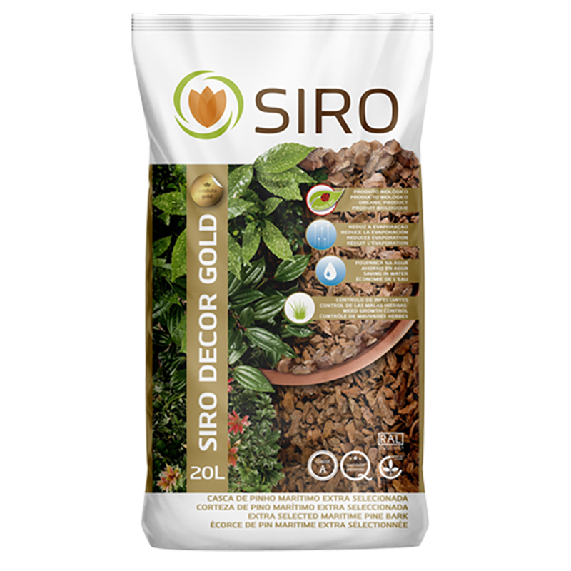 Siro Decor es corteza de pino seleccionada y tamizada. Tras el cribado, se somete a un tratamiento térmico de acuerdo con la legislación vigente. Es un producto natural y orgánico para cubrir e incorporar al suelo. El tamizado adicional proporciona excelentes características para la decoración. Producto recomendado para: Decoración, Mantillo, Cobertura de suelo, Jardineras y Jarrones. Xerojardinería.