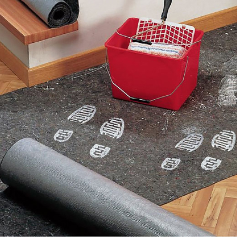 Protector de suelos, provisto de una lámina plástica de seguridad que evita que traspasen líquidos. Dicha lámina trasmite un óptimo agarre a la superficie colocada, evitando deslizamientos. No se rompe ni se desgarra, pudiendo ser reutilizada.