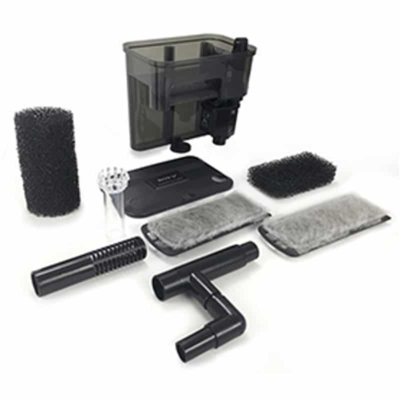 Al llevar la bomba en el interior la carcasa exterior es mucho más fina. De modo que se ahorra mucho espacio en la cara del acuario donde se apoya el filtro. El filtro se instala en un minuto y su mantenimiento es muy sencillo. Las bombas que incluyen son altamente eficientes, regulables y de bajo consumo.