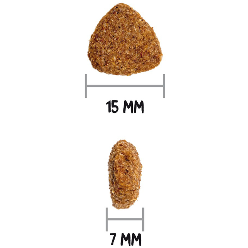 Carnes 35% (carnes deshidratadas 25%, pollo fresco* 10% antes de la extrusión), trigo integral* (21%), maíz integral* (10%), cebada integral* (9%), arroz integral* (7%), salvado de trigo* (6%), garrofa* (2%), guisantes enteros* (2%), grasa de pollo, manzana* (1%), aceite de salmón, semilla de lino* (1%), pulpa de remolacha, proteína hidrolizada de pollo, fructo y manano oligosacáridos, levadura de cerveza* (0,5%), plantas aromáticas 0,02% (hinojo*, equinácea*, tomillo*), yucca schidigera.*INGREDIENTES NATURALES
