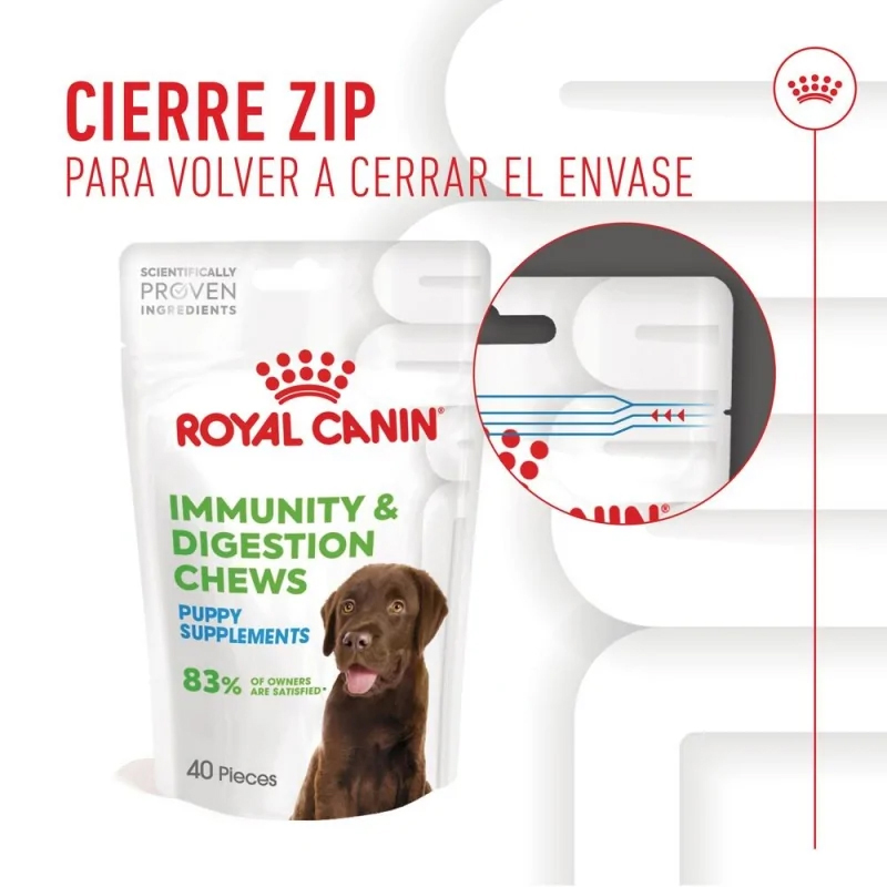 Royal Canin Inmunity & Digestion Puppy Chews Suplemento Alimenticio para Cachorros. Suplemento alimenticio masticable para cachorros a partir de los 6 meses que apoya las defensas naturales.