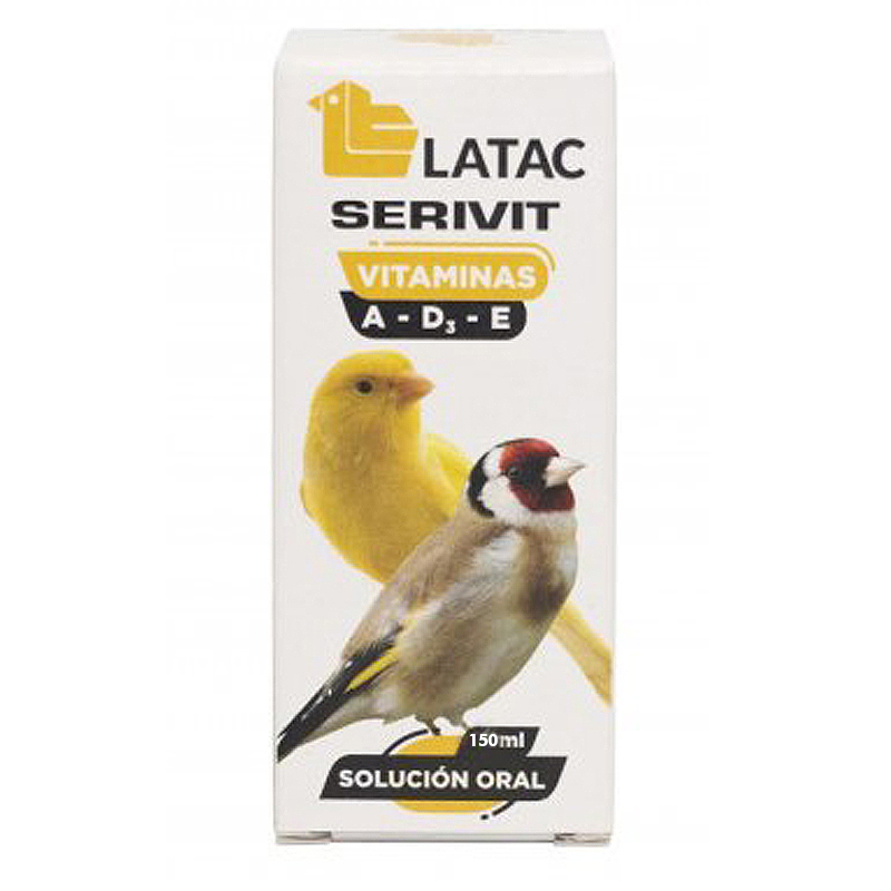 El Latac Serivit es un suplemento vitamínico líquido formulado para aves y pequeños animales, que combina vitaminas A, D3 y E en la dosis adecuada para favorecer la salud general, la reproducción y el desarrollo de las crías.