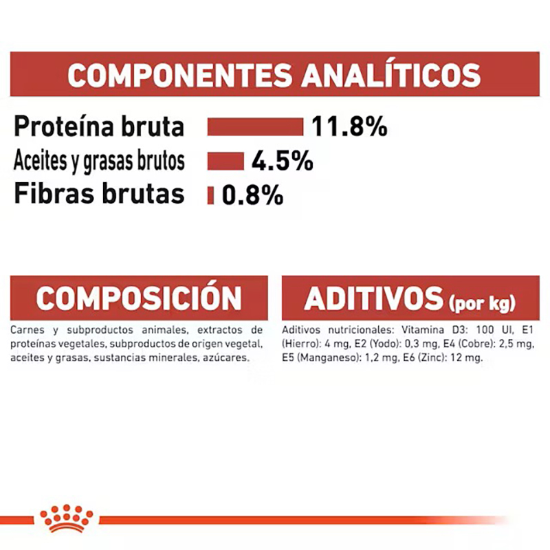 Composición: carnes y subproductos animales, extractos de proteínas vegetales, subproductos de origen vegetal, aceites y grasas, sustancias minerales, azúcares.