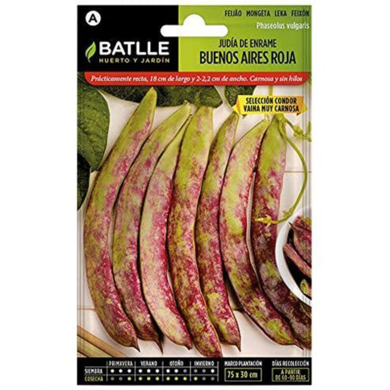 Rústica, vigorosa y muy adaptable. Vaina plana, verde con manchas rojizas, prácticamente recta, de 18 cm de longitud y 2-2,2 cm de anchura.