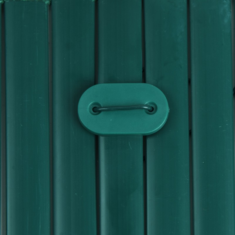 Su color verde se integra perfectamente con el entorno vegetal y con cañizos de tonos naturales o artificiales similares, aportando un acabado limpio y profesional en exteriores.