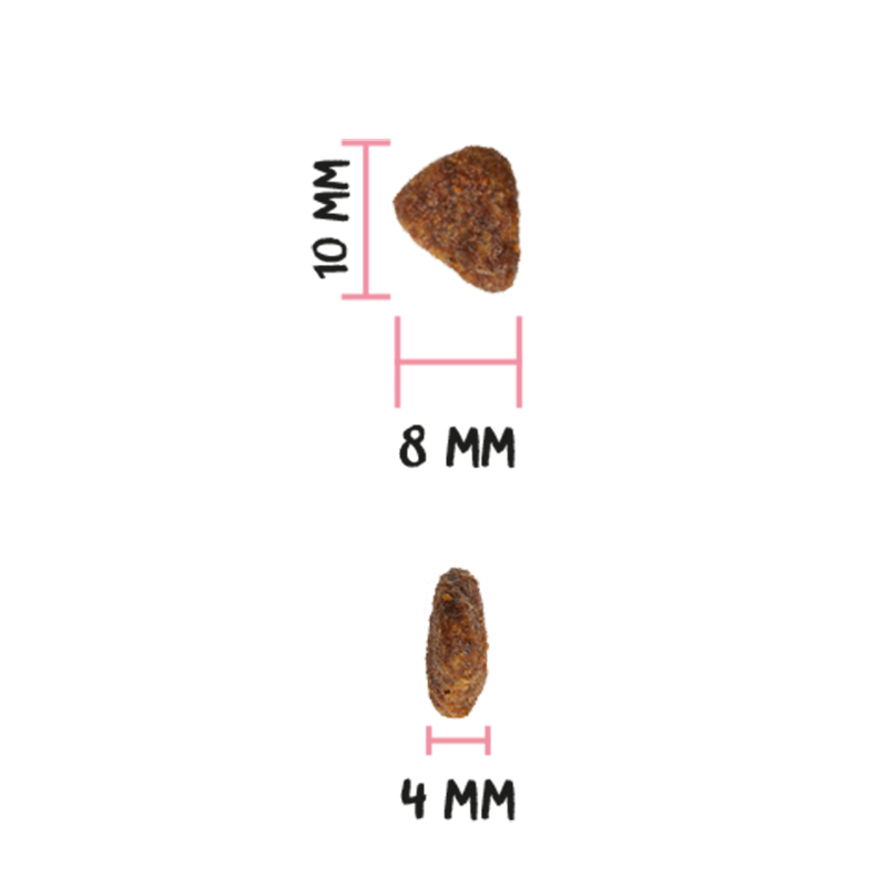 Pollo fresco* (15 % mín. antes de la cocción), pavo fresco* (15 % mín. antes de la cocción), hidrolizado de salmón (12 %), trigo* (12 %), pollo deshidratado (9 %), grasa avícola (preservada con antioxidantes naturales), proteína de trigo, proteína de maíz, raíces de mandioca* (4 %), cerdo deshidratado (4 %), arroz* (4 %), lignocelulosa, verduras y frutas frescas antes de la cocción (manzana* 1 %, zanahoria* 0,5 %, calabaza* 0,5 %), salmón deshidratado (2 %), proteína hidrolizada de pollo, aceite de salmón (preservado con antioxidantes naturales), levaduras (nucleótidos)* (1 %), huevo deshidratado* (1 %), pulpa de remolacha, sal gema*, raíces de achicoria (FOS)*, extracto de levadura (MOS), alfalfa deshidratada*, algas marinas deshidratadas* (500 mg/kg), glucosamina (500 mg/kg), yucca shidigera, condroitín sulfato (100 mg/kg), arándanos* (100 mg/kg), té verde* (80 mg/kg), equinácea* (80 mg/kg), flor de manzanilla* (80 mg/kg), hinojo* (80 mg/kg). *Ingredientes naturales