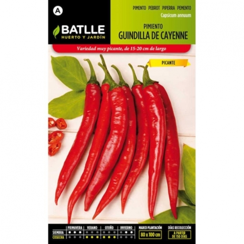Variedad de pimiento picante ampliamente cultivada. Planta de unos 65-70 cm. de altura, con hojas pequeñas y estrechas. Frutos largos de unos 15-20 cms. Terminados en punta y superficie lisa. Cultivo : Se siembran de Enero a Mayo en semillero, en cama caliente o en bandejas para su posterior trasplante. Se trasplanta cuando las plantas tengan 15 cm. de altura, al marco de 70X40 cm. aproximadamente. Recolección : A partir de Julio-Agosto cuando los frutos están bien maduros. Peso neto : 2 gramos Nº de semillas en cada sobre : 300 El pimiento (Capsicum annuum) es una planta anual de la familia de las Solanaceas. Se trata de un cultivo de verano, muy extendido en toda el área mediterránea. No soporta las temperaturas bajas. Produce unos frutos con gran variedad de formas (cónicos, cuadrados, prismáticos, acorazonados, redondos, etc.) y colores a la madurez (verde, rojo, amarillento, blanco, lila, etc.). Hay frutos dulces y picantes (capsicina). Pueden utilizarse para fritos, a la brasa e incluso como colorantes una vez están secos los frutos. Cultivo muy tradicional. CONSEJOS GENERALES PARA EL CULTIVO DEL PIMIENTO Reservar parcelas sanas, profundas, ricas y no encharcadizas, de textura ligera o franca y que drenen bien para que no haya problemas sanitarios en la zona del cuello y radicular. También se aconseja dejar varios años sin cultivar pimientos en una misma parcela. Es un planta que se da bien en climas cálidos, por lo que se ha adaptado perfectamente al cultivo en invernadero. Su desarrollo óptimo se da entre 16 y 25ºC. Por debajo de 15ºC su crecimiento se ve afectado y por debajo de 10ºC deja de crecer. Por encima de 35ºC puede haber caída de flores. Elegir la variedad más idónea con relación al uso que deseemos: Asar, ensalada, freír, rellenos, salsas, condimento, etc. El abonado debe ser de fondo y después en cobertera con abonados ricos en Nitrógeno, Potasio y microelementos. La siembra se realiza en semilleros de bandejas principalmente, y la siembra directa se utiliza algunas veces para cultivares industriales (2-3 Kg/ha de semilla). Para este cultivo es muy importante la desinfección y la realización de tratamientos para evitar problemas criptogámicos en las primeras fases. El marco de plantación oscila entre 40-50 cm. entre plantas y 70-90 cm. entre líneas. Una vez regado y con las plantas ya arraigadas se aporca para que el riego ( si es a manta) no moje la base del tallo, y provoque enfermedades. El riego por goteo es muy adecuado para evitar problemas de encharcamientos El problema fitosanitario más importante es la tristeza del pimiento que según determinados sintomas externos se trata de diferente plaga: Phytophtora capsici(mildiu) Ataque por líneas con marchitamiento brusco y total, y con escasa defoliación. Verticillium dahliae (Verticilium) Ataque por rodales, marchitamiento progresivo a veces unilateral, defoliación acusada y oscurecimiento de los haces vasculares con progresión lenta en la parcela. Por ultimo está la Asfixia Radicular donde el ataque es por rodales, defoliación irregular, desecación de la parte interna del tallo y pudrición de las raicillas. Para favorecer el cuajado sobre todo en invernaderos y túneles es deseable airear lo máximo el cultivo aunque sea artificialmente, disminuir el Nitrógeno e incrementar el Fosforo, Potasio y Magnesio, Eliminar el blanqueo de invernaderos para que haya más luz y disminuir el volumen del agua de riego. Con todo esto se provoca un stress que favorece el cuajado,