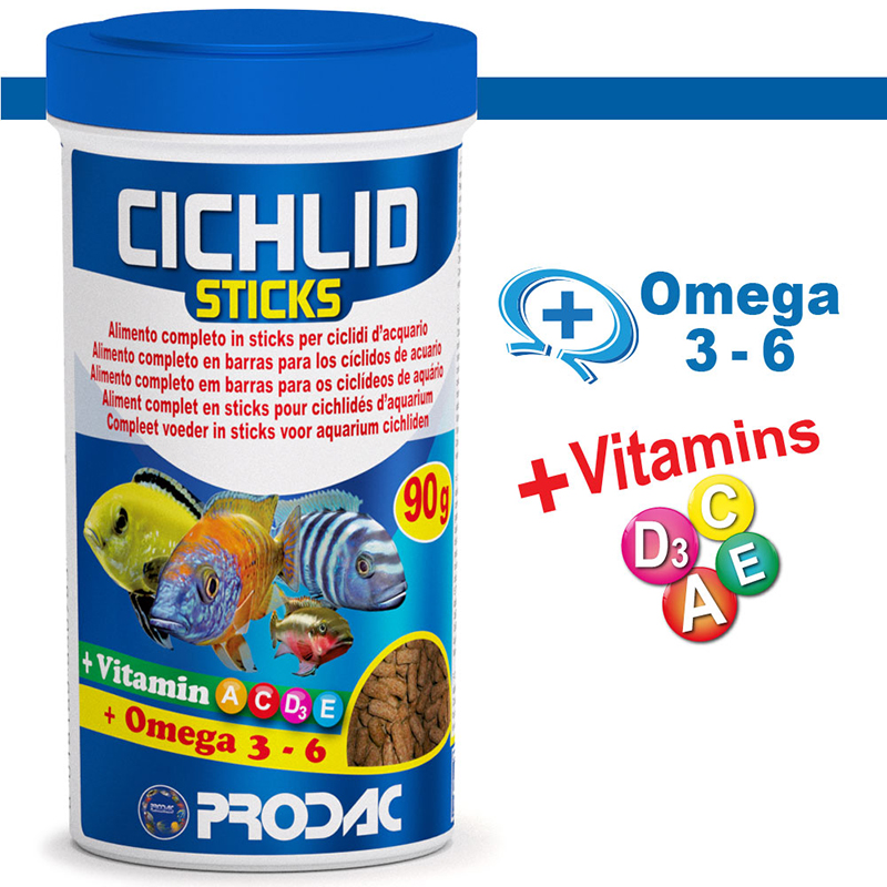 PRODAC Cichlid Sticks 1200 ml (450 g) es un alimento premium en forma de sticks flotantes, diseñado para satisfacer las necesidades nutricionales de los cíclidos de tamaño mediano y grande, tanto de agua dulce como de agua tropical. Su fórmula equilibrada favorece el crecimiento, potencia la coloración natural y mantiene una excelente condición física.