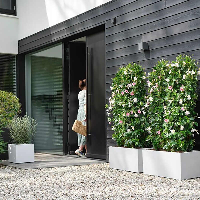 Las macetas decorativas vivo next le dan un aspecto refrescante a tu jardín o interior con su diseño moderno y su forma cuadrada. Gracias al depósito de agua integrado, podrás cuidar de tus plantas sin ningún esfuerzo. Puedes utilizarlas en interiores y exteriores gracias al tapón suministrado. Y gracias a las ruedas integradas, la maceta decorativa se puede desplazar fácilmente. Puedes estar tranquilo: esta maceta decorativa se ha hecho con amor a la naturaleza. Está fabricada con plástico 100 % reciclado, producido con energía eólica de nuestros propios aerogeneradores y además es totalmente reciclable.